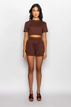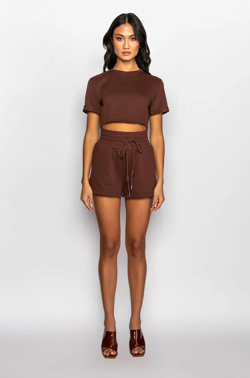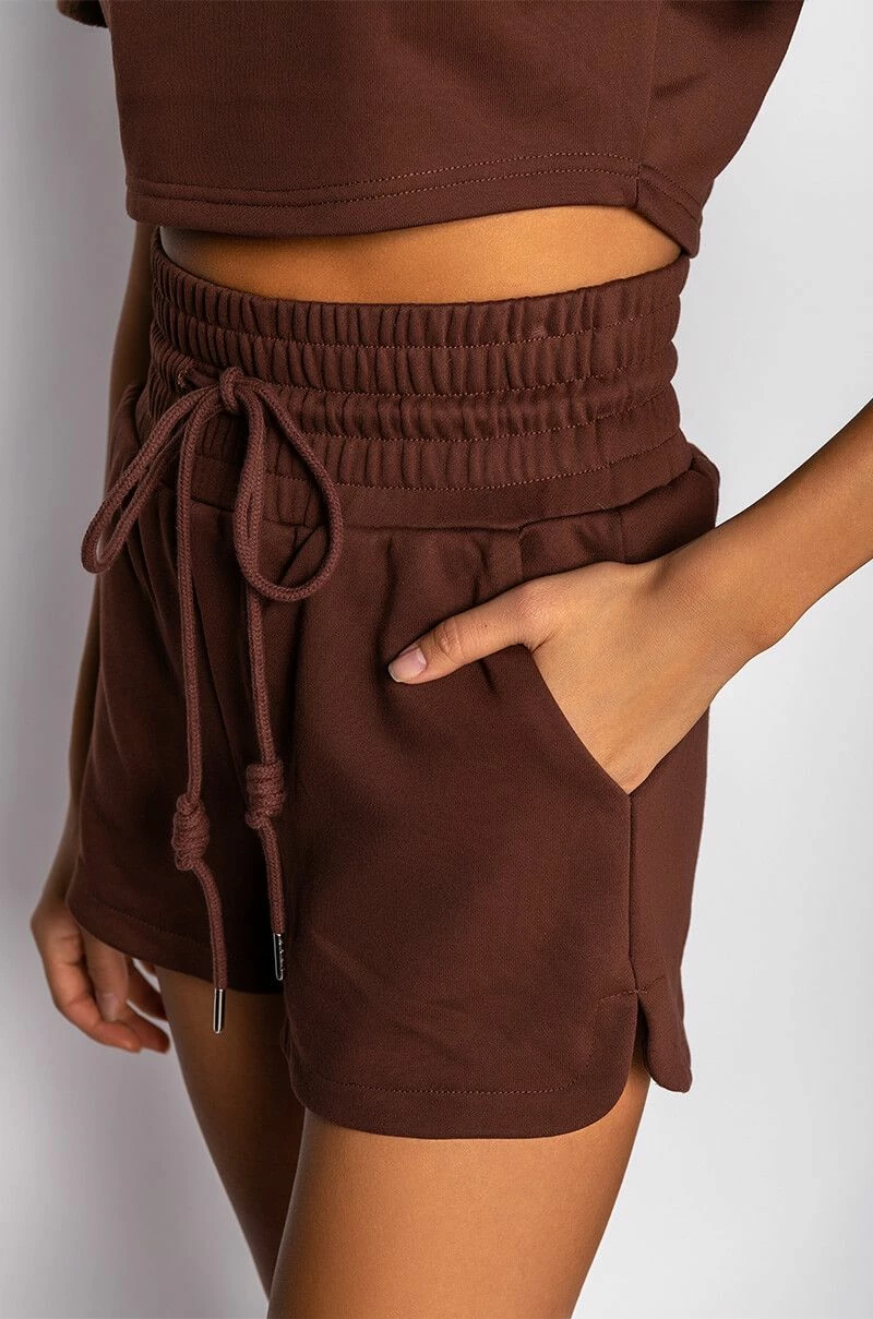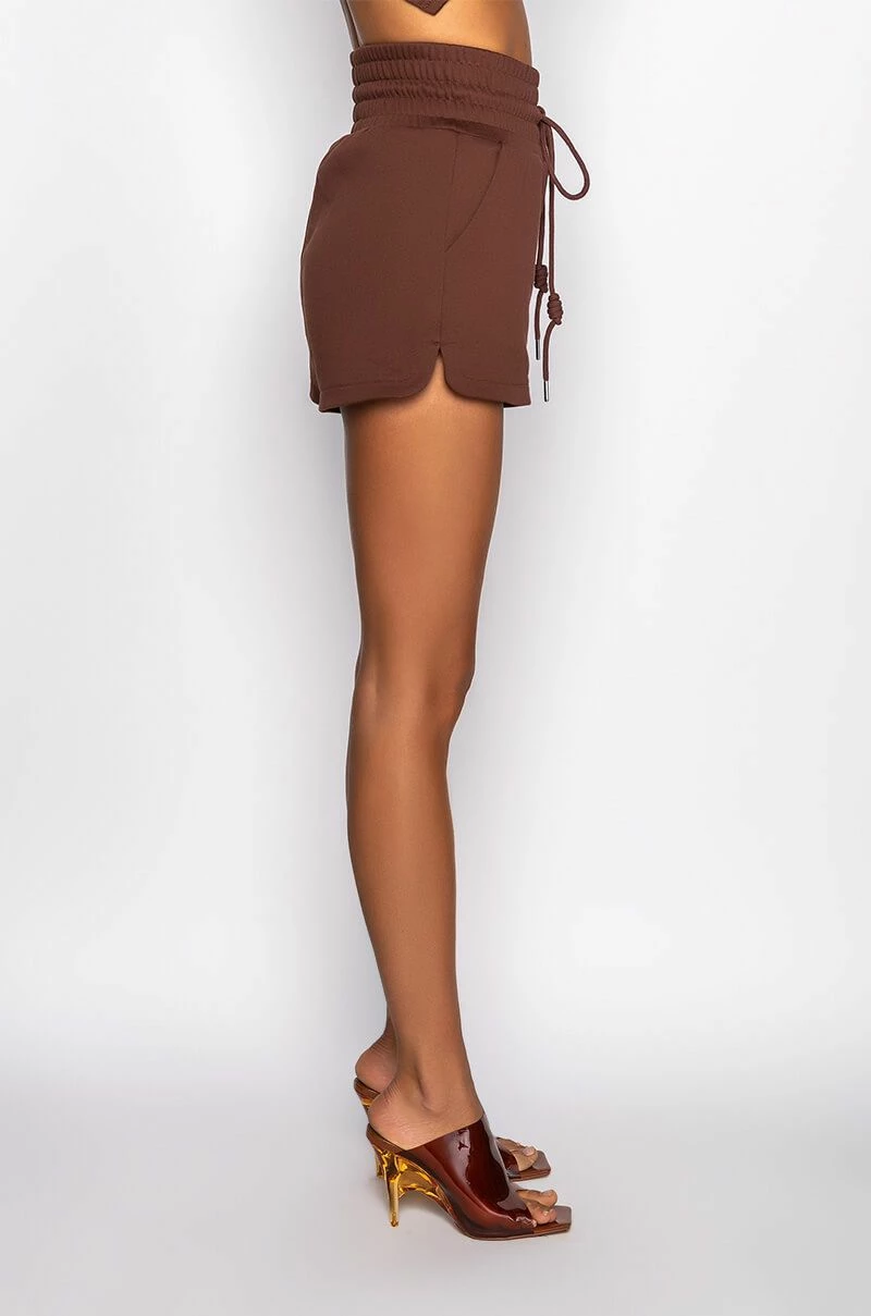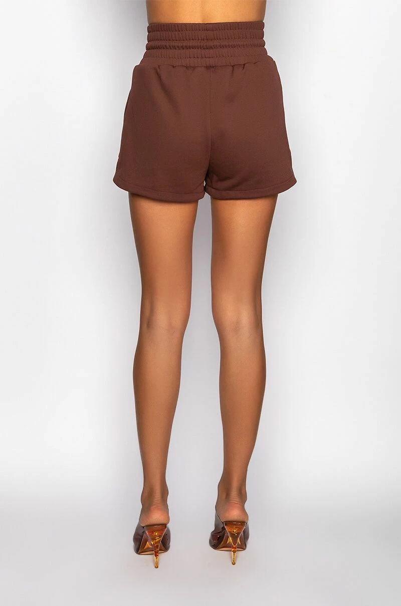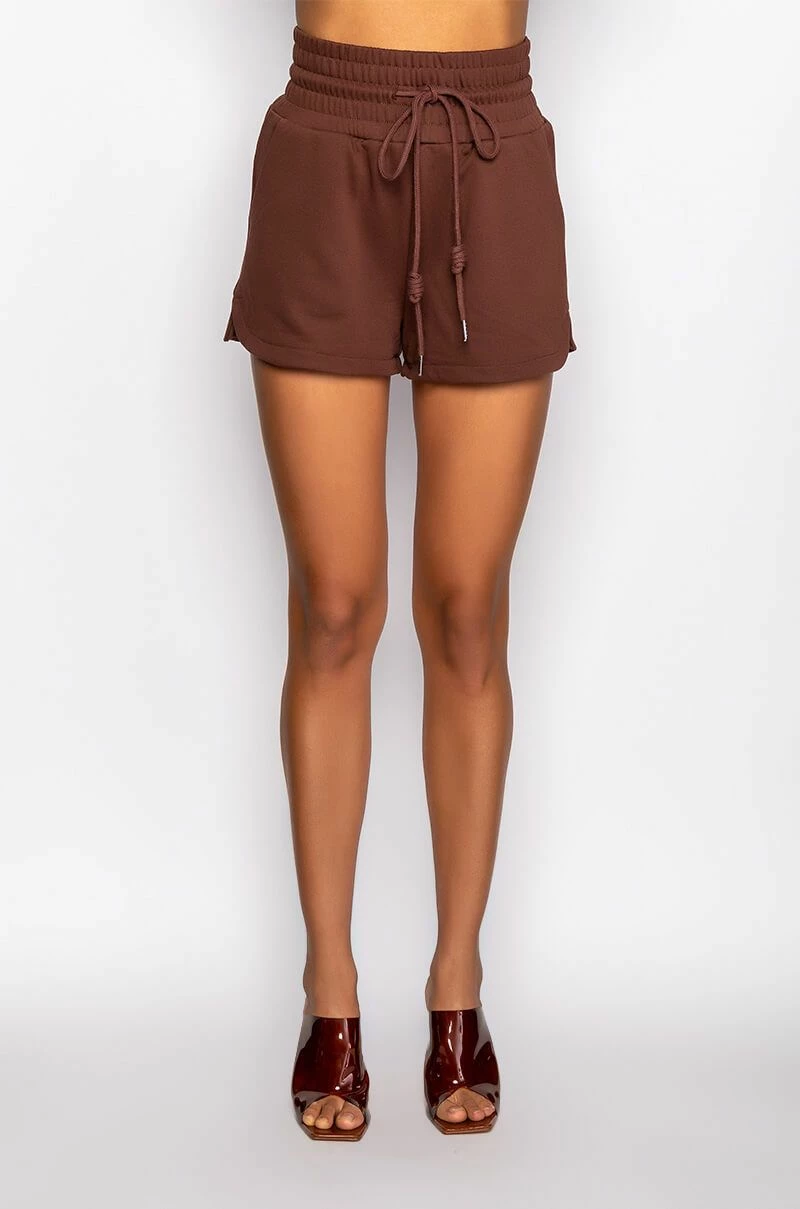 The AKIRA Label Cici Sweatshort is made from a soft poly cotton blend fabrication and features a high rise waist, elasticated drawstring waistband, slant side pockets, and a dolphin short silhouette. Pair this piece with the matching AKIRA Label Cici Cropped Open Back Tshirt and platform sneakers for a fresh athleisure look!
