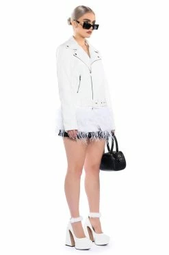 – Self: 100% PU, Combo: Feather, Lining: 100% Polyester