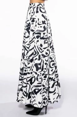 The AKIRA Label Dali’s Muse Abstract Maxi Skirt is a sophisticated skirt complete with a smooth fabrication, graphic digital brushstroke print patterning, slant side pockets, pleat front detailing, and a flowing maxi length. Complete with a satin inner lining and a concealed back zipper closure. Pair with the coordinating AKIRA Label Dali’s Muse Bandeau Abstract Top to complete the look.