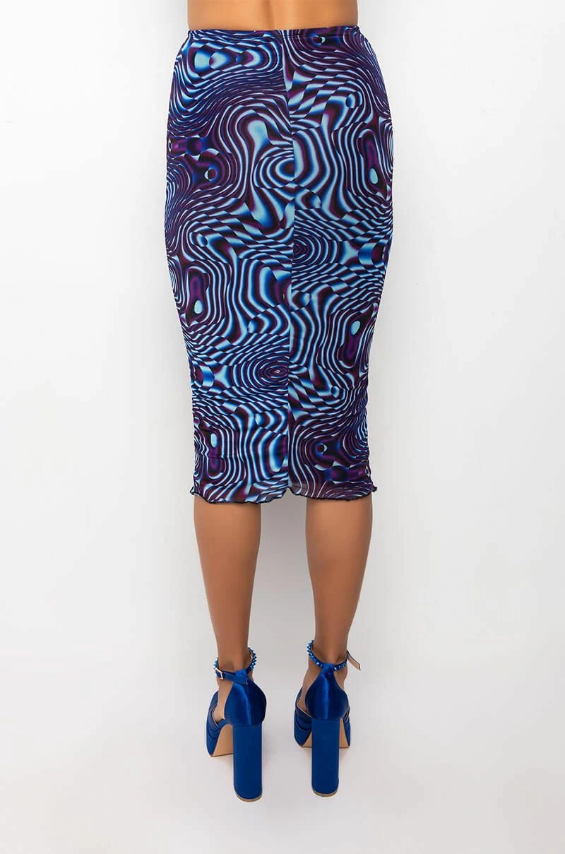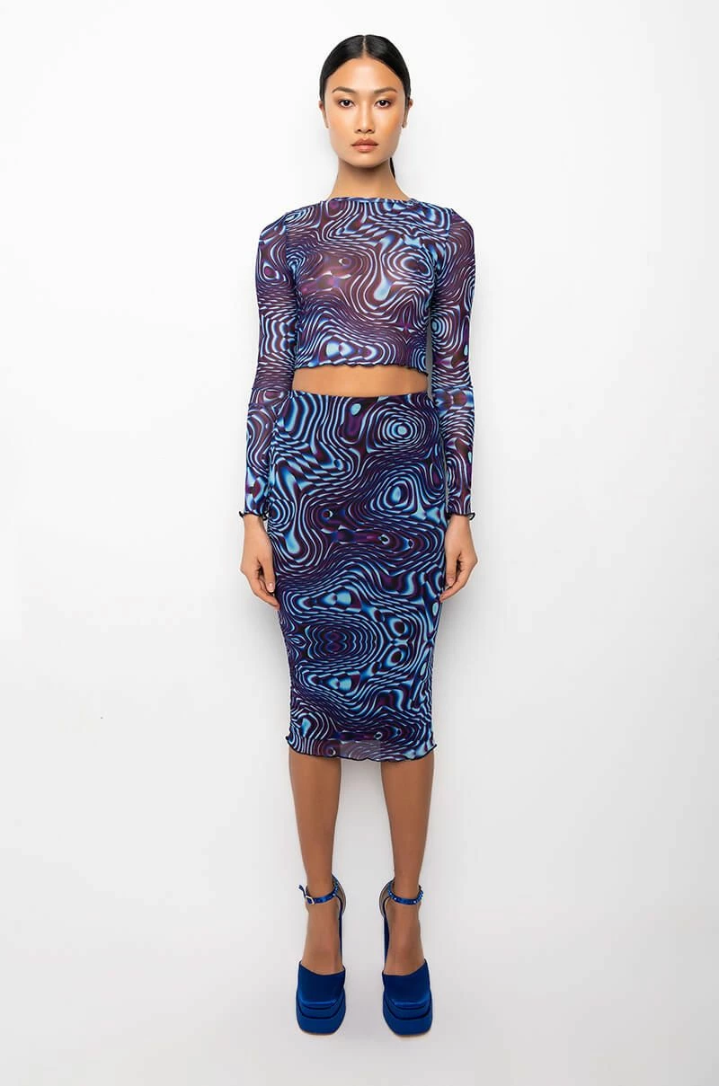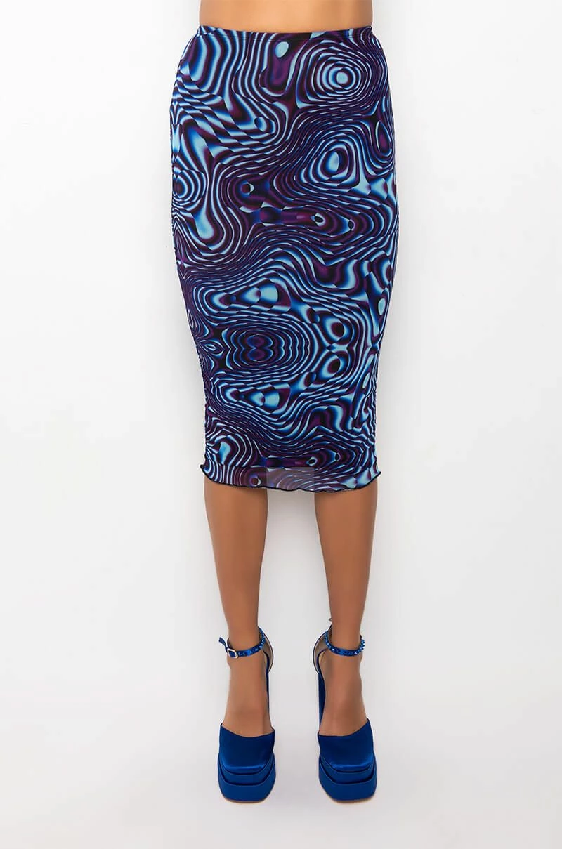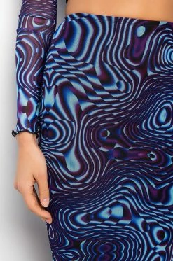 Bad bitches link up! The AKIRA Label Link Up Mesh Midi Skirt features a layered mesh fabrication, bodycon silhouette, swirl print patterning, exposed seam detailing, a midi length, and an elastic waistband. Complete your set with the matching AKIRA Link Up Long Sleeve Mesh Crop Top.