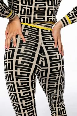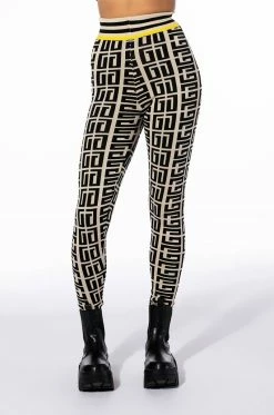 This legging is a cold weather must-have. The AKIRA Label Locked In Graphic Print Knit Jogger is a soft knit piece with a graphic print woven throughout. This bodycon bottom features an elastic waistband, a high rise silhouette, and ribbed knit hems. Wear with the matching AKIRA Label Locked In Graphic Print Sweater Hoodie for a complete look.