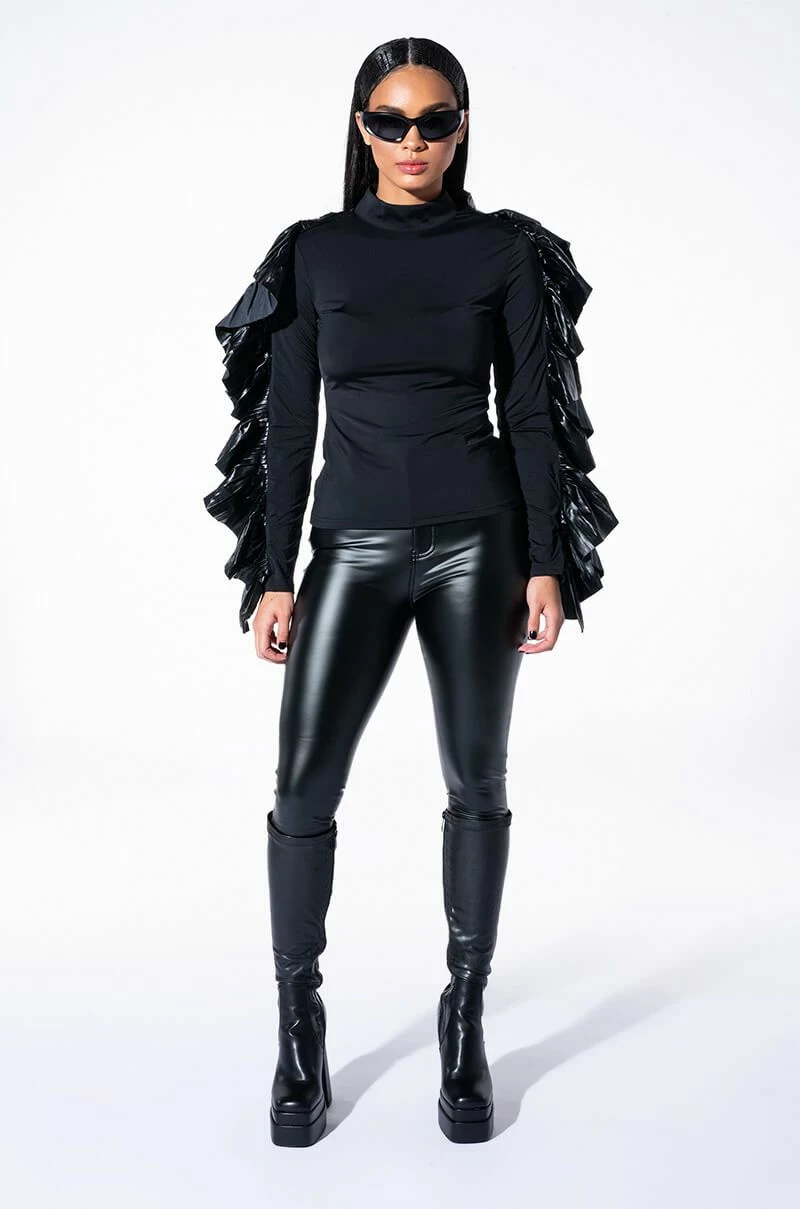 – 86% Nylon 14% Spandex, Trim Fabric: 55% PU, 45% Viscose
