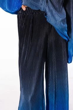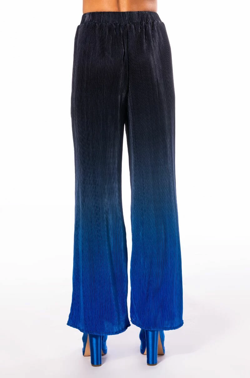 Night moves. The AKIRA Label Midnight Stunner Palazzo Pant is a luxe pleated satin bottom featuring a high rise waistline, an elastic waistband, wide palazzo pant legs, ombre dip dye detailing, and a pull on fit. Pair this piece with the matching AKIRA Label Midnight Stunner Ombre Plisse Button Down and mules for an effortlessly chic look!