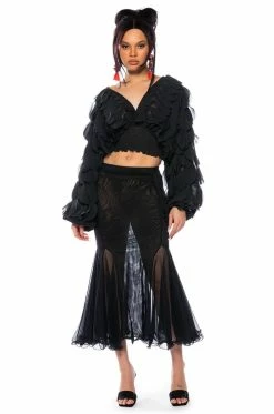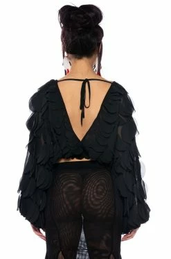 Embrace your divine feminine with The AKIRA Label Milania Layered Chiffon Deep V Blouse! This top is made from a sheer, chiffon base fabrication and features a plunging neckline and long ruffled petal panel detail sleeves and bodice. Complete with a wide, smocked hem, and a self-tie open back closure. Pair with a mini skirt and strappy sandals, or straight leg denim and heeled boots – the styling possibilities are endless!