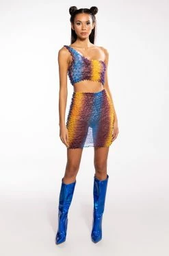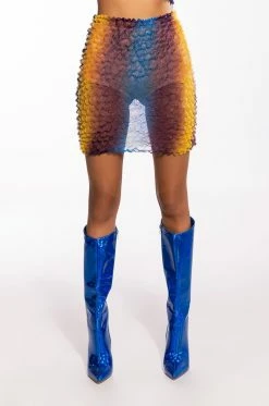 So sweet and refreshing. The AKIRA Label Paloma Textured Mini Skirt features an unlined popcorn textured fabrication, a tri-color base, and a mini length silhouette. Complete with a pull on design and tons of stretch. Style this mini with the coordinating AKIRA Label Paloma Textured One Shoulder Top..