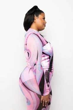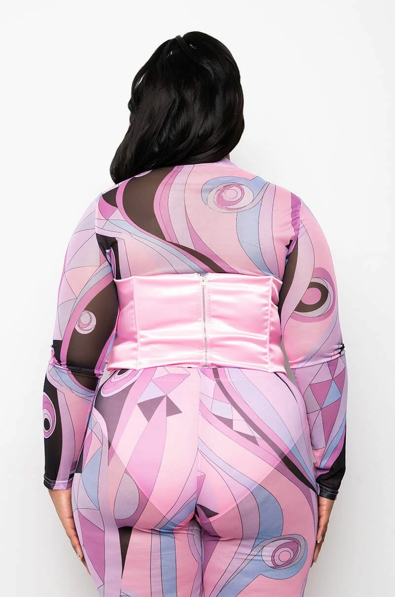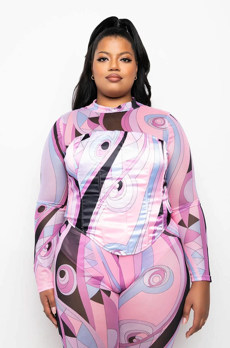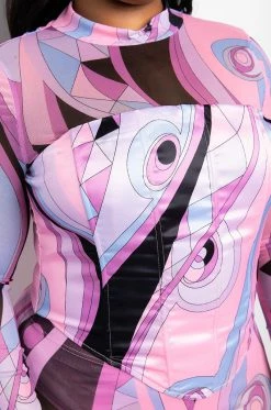 The AKIRA Label Plus Mixed Swirl Satin Corset is made from a satin fabrication and is complete with a strapless design, an abstract multicolor swirls and shapes print pattern, boning for structure, a pointed hem, and a back zipper closure. Wear this piece over the AKIRA Label Plus Mixed Swirl Long Sleeve Mock Neck Mesh Bodysuit for a fresh, abstract look.