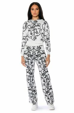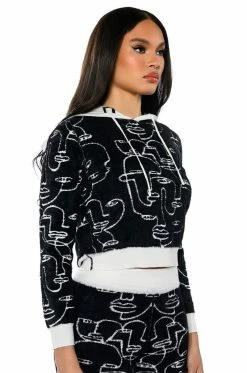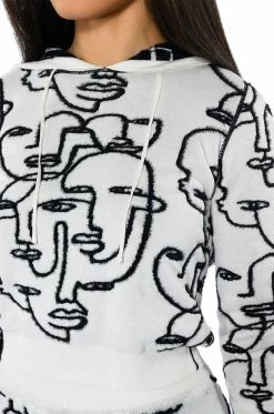 The AKIRA Label She’s Giving Art Reversible Long Sleeve Hooded Sweater is a part of a stylish two-piece athleisure set. Perfect for your New Year’s wardrobe, this sweater is made from a stretch knit base fabrication and features an all over fuzzy line art design. Complete with a cozy, drawstring attached hood, a cropped silhouette, long sleeves, and ribbed elastic hems. Turn the sweater inside out for the inverse design! Pair with the coordinating AKIRA Label She’s Giving Art Wide Leg Knit Pant and chunky heeled boots for a sleek athleisure look and a night at the museum.