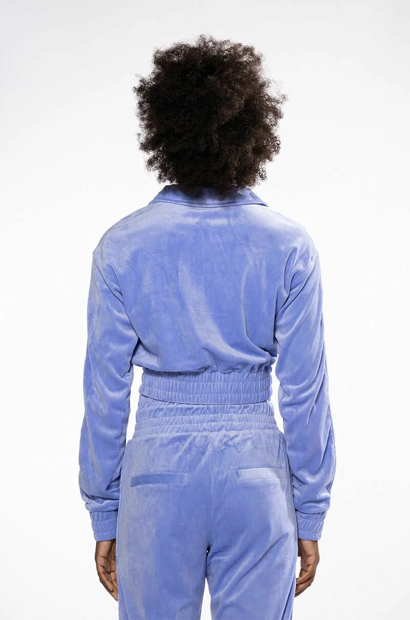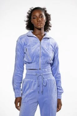 The AKIRA Label The Jet Setter Velvet Cropped Sweatshirt is made from a plush velvet fabrication and features a standing collar, long sleeves with sheer paneling, mock zipper slant pockets, column stitch detailing, ruched elastic hems, a cropped silhouette, and a front zipper closure. Pair this piece with the matching AKIRA Label The Jet Setter Velvet Wide Leg Jogger to complete your look.