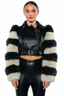 – Self: 56% Polyurethane, 46% Polyester, 4% Cotton, Lining: 100% Polyester, Faux Fur: 100% Acrylic